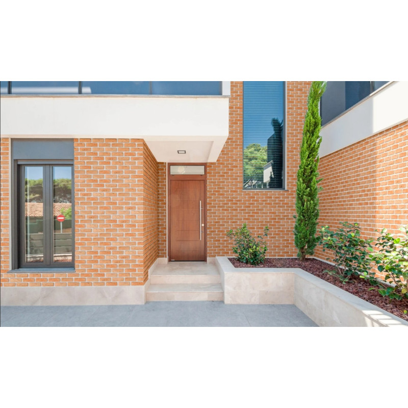 • Autentisks sena ķieģeļa izskats — tekstūra ar dabīgām krāsas niansēm un porainību, kas rada siltu noskaņu .
