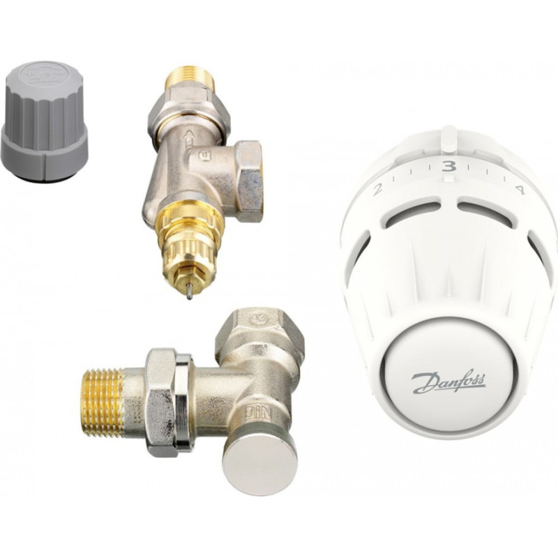 Komplekts ar Danfoss Regus® sensoru, RA-FN vārstu un RLV-S noslēgvārstu. Radiatoru vārsti ar blīvgredzena montāžas uzgali.