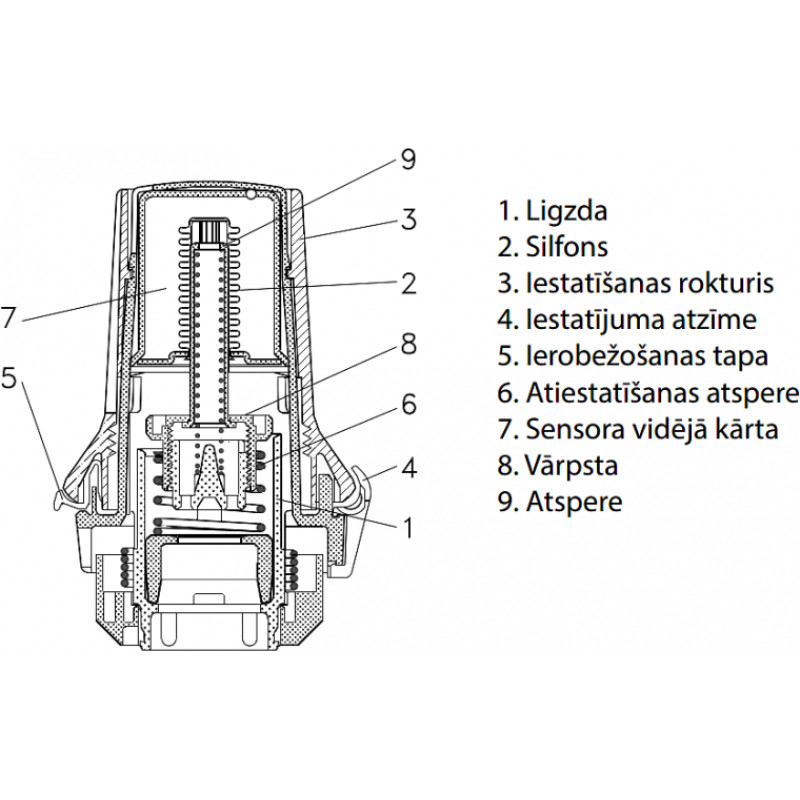 Danfoss Termostatgalva Danfoss RAS-C ar temperatūras ierobežojuma funkciju - gab.