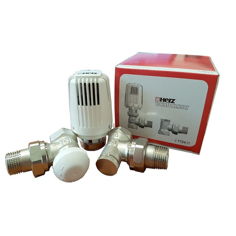 Komplekts sastāv no: - HERZ Classik termostata galva ar iebūvētu šķidro hidrosensoru (Hydrosensor). Regulēšanas diapazons 6-28° C ar noslēgšanu "0" un pretaizsalšanas 6 °C iestatījumu. Vītne M28x1.5. - HERZ augstspiediena leņķa vārsts RL-1 DN 15. Savienojums ar radiatoru ar blīvējuma "sfēriskais konuss". Universāls modelis vītņotajām caurulēm un veidgabaliem. Pieslēgums Rp 1/2" x R 1/2". - HERZ termostata leņķa vārsts TS-90 DN 15. Savienojums ar radiatoru ar blīvējuma "sfēriskais konuss". Universāls modelis vītņotajām caurulēm un veidgabaliem. Pieslēgums Rp 1/2" x R 1/2".