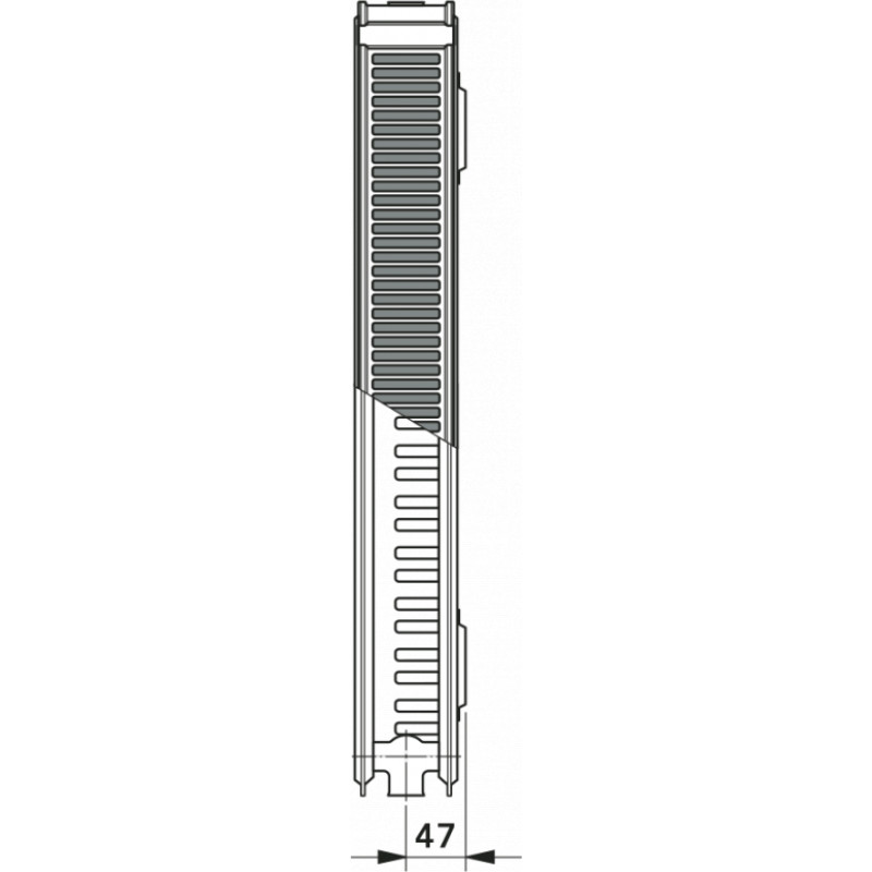 Tērauda paneļu apkures radiatori ar sānu pieslēgumu un sienas stiprinājumu. Divslāņu ar vienu konvekcijas plāksni. Siltumatdeve atbilst EN-442-2 normai.