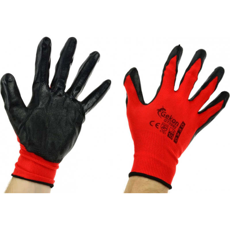 Geko Aizsargcimdi ar nitrila pārklājumu, sarkani, izmērs 10, G73582, GEKO