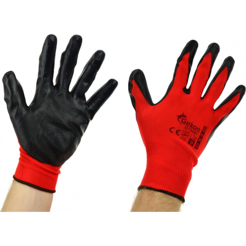 Geko Aizsargcimdi ar nitrila pārklājumu, sarkani, izmērs 9, G73581, GEKO