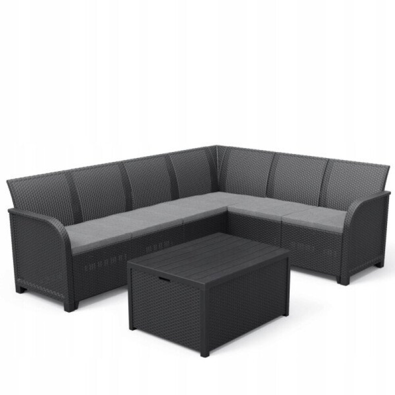 KETER Rosalie 6 vietīgs stūra dīvāns ar Arica rezolith galdu / gab