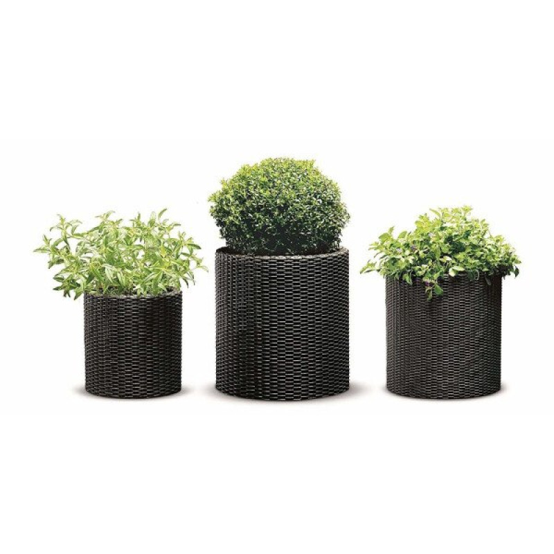 KETER S+M+L CYLINDER PLANTERS trīs puķu podu komplekts, antracīta pelēka / gab