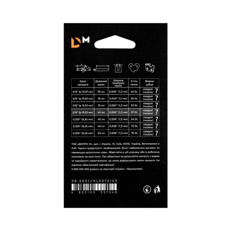 Dnipro-M Motorzāģa ķēde 40cm, 3/8"lp, 0.050", 57DL (paredzēts DSE-24DS) DNIPRO-M