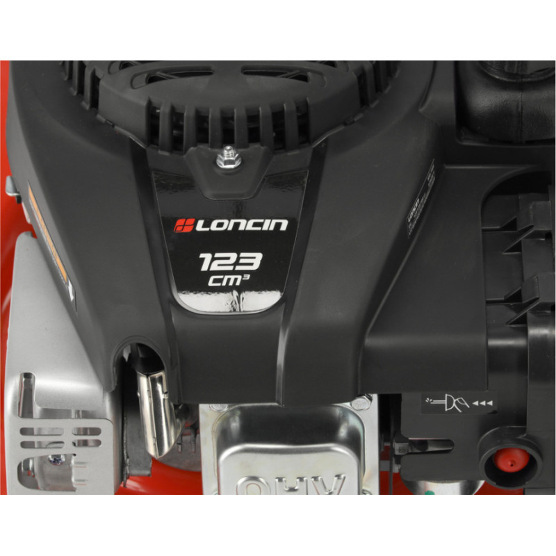 Jaudīgs benzīna zāles pļāvējs ar 123 cm3 LONCIN dzinēju, kas nodrošina augstu jaudu un veiktspēju. 41 cm darba platums un izturīgais dizains atvieglo zāles pļaušanu šaurās, nelīdzenās un sarežģītās vietās, piemēram, nogāzēs, gar celiņiem un puķu dobēm vai blakus stādījumiem. Iebūvētais piedziņas mehānisms uzlabo ierīces vadāmību.
