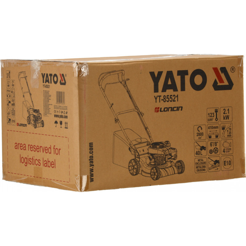 Yato Pašgājējs benzīna zāles pļāvējs 41 cm, YATO, YT-85521, LONCIN motors 2.1 kW, 7 augstuma regulēšanas līmeņi