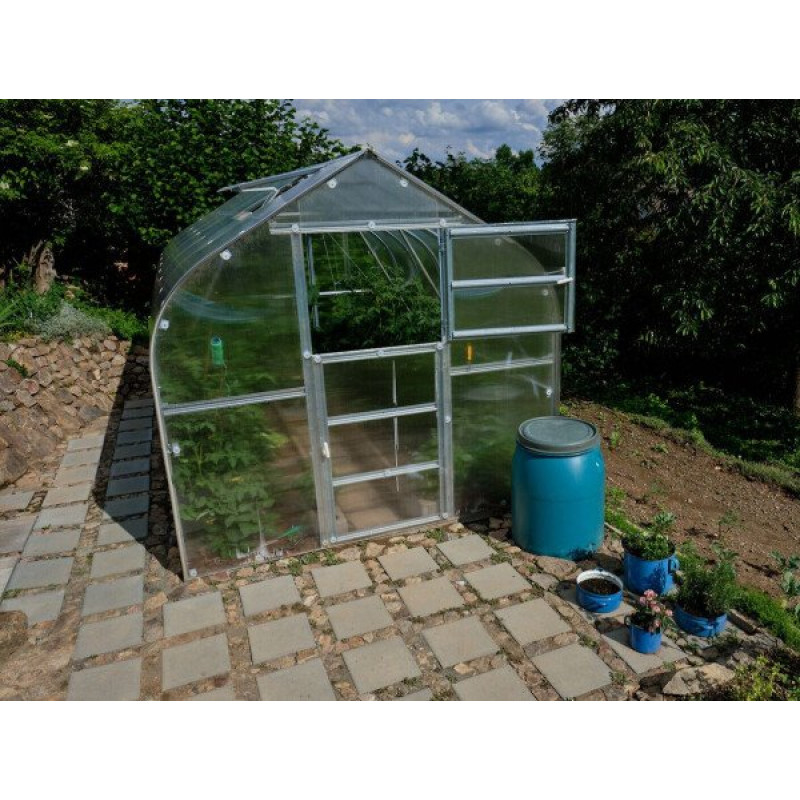 Apraksts: Polikarbonāta siltumnīca KLASIKA STANDART Lietuvā ražota ļoti izturīga cinkotu tēraudu profilu siltumnīca garantēs Jums izcilu ražu. Siltumnīca Klasika Standart ir viena no izturīgākajām šāda tipa siltumnīcām. Siltumnīcas Klasika Standart ir plašas kas ļauj vairāk piekļūt saulei un gaismai kas ir viens no svarīgākajiem nosacījumiem labai augu augšanai. Siltumnīcas KLASIKA STANDART metāla profili izgatavoti no 78 mm platas un 1 mm biezas tērauda sloksnes kuras komplektē ar M5 skrūvēm. Siltumnīca KLASIKA STANDART ir ļoti izturīgas jo īpaši ziemeļu reģionos. Siltumnīcu nav nepieciešams uz ziemu demontēt jo siltumnīca var izturēt sniega svaru. Siltumnīcai vienā galā ir divviru durvis kā arī lūkas ar automātiskajiem lūkas atvērējiem. Papildus var iegādāties ejas atdalītājus galdiņus papildus lūkas papildus durvis nodalījumu iekšā siltumnīcai laistīšanas sistēmu. Siltumnīca ir viegli montējama katrs profils ir numurēts un instrukcija ir ar foto par katru montāžas soli. Komplektā ietilps: Cinkoti metāla tērauda profili 1 mm biezi 56 mm plati profili cinka biezums 275 gr/m2 karkasa profili ir ar enkuriem kuri ierokās 40 cm zemē Pamati 10 cm. augsti izgatavoti no cinkota metāla 1mm. biezumā Visi nepieciešamie stiprinājumi skrūves un blīves Gumijas Starplikas lai pasargātu polikarbonāta kanālus no putekļiem un netīrumiem 2 lūkas 2 automātiskie lūkas atvērēji. Montāžas instrukcija ar bildēm. plus katrs profils ir numurēts lai vieglāk salikt karkasu Siltumnīcas KLASIKA STANDART 10 izmēri: - platums 250 m