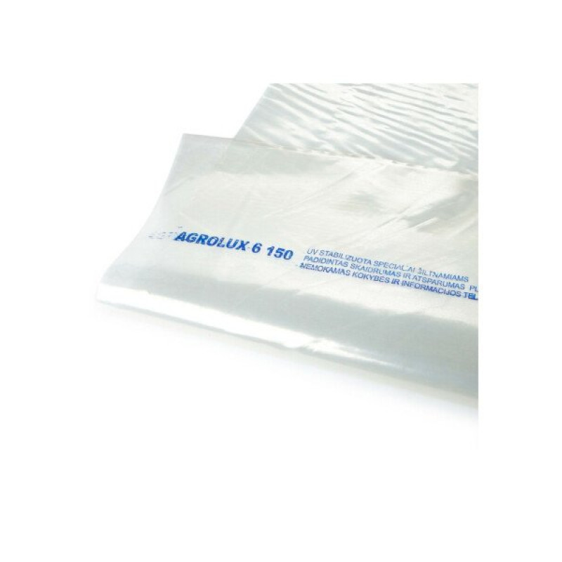 Rullī ir 80m 480 m2. Pārdodam tikai ruļļos Biezums 150mkr Platums 6m Garums 80m Siltumnīcas plēve AGROLUX ir paredzēta tieši siltumnīcām un lai gan tās biezums deklarēts 150 mikroni papildus piedevu dēļ tās stiprība ir lielāka par 200 mikroniem parastajām stabilizētām plēvēm. Plēve siltumnīcām AGROLUX ir speciāla polietilēna plēve siltumnīcu konstrukciju pārklāšanai. AGROLUX ir unikāls produkts jo plēve satur ne tikai ultravioleto UV stabilizatorus bet arī infrasarkanos IR stabilizatorus un pretkondensācijas stabilizatorus. Apraksts Plēve siltumnīcām AGROLUX ir speciāla polietilēna plēve siltumnīcu konstrukciju pārklāšanai. AGROLUX ir unikāls produkts jo plēve satur ne tikai ultravioleto UV stabilizatorus bet arī infrasarkanos IR stabilizatorus un pretkondensācijas stabilizatorus. Izmanto siltumnīcu pārsegšanai būvniecībā tvaika izolācijai hidroizolācijai logu aizsegšanai ilgstošai pārklāšanai ārā malkas pārklāšanai būvējamas ēkas pārklāšanai un tamlīdzīgi. Plēve piemērota vietām kur gaisa temperatūra noslīd zem 20 grādiem. Plēve satur piedevas kas novērš kondensāta pilēšanu uz augiem. Abas plēves puses pilda vienu un to pašu funkciju tāpēc nav nozīmes kurā pusē to uzliksi. Gaismas izkliede Perfekti izkliedēta gaisma nodrošina vienmērīgu gaismu siltumnīcā. Pareizais gaismas daudzums ļauj augam pareizi augt un palielināt augļus. Pretkondensācijas efekts AD Plēvēm ar pretaizvīšanas piedevām ir mazāks virsmas spraigums tāpēc ūdens pilieni tek pa plēves virsmu un nekrīt uz augu lapām. Pateicoties antifāgiem plēves iekšējā pusē neuzkrājas kondensāts. Vienkāršas polietilēna plēves trūkums ir kondensāta t.i. mitruma pilienu veidošanās siltumnīcas iekšpusē. Ūdens tvaiki kondensējas pārvēršoties pilienos kas nokrīt uz augiem. Pilieni var apdedzināt augus un pārmērīgs mitrums var būt slimību cēlonis. Pretkondensācijas efekts darbojas ar jumta slīpumu. Minimālais leņķis ir aptuveni 15o optimālais ir aptuveni 30o. Pretmiglošanas efekts AF Samazina tvaika veidošanos tunelī īpaši no rīta un vakarā. Tvaika klātbūtnē tiek samazināta pārklājuma gaismas caurlaidība siltumnīcā nonākošās gaismas daudzums samazinās par 1525 kas palēnina augu augšanu. Termiskais efekts IR plēvēm ar infrasarkano staru piedevām ir zemāka infrasarkano staru caurlaidība un tas samazina siltuma zudumus nakts laikā tās siltumnīcā uztur augstāku temperatūru nekā standarta plēves. Priekšrocības: Aizsardzība pret salu un zemu temperatūru. Samazina temperatūras atšķirības starp dienu un nakti. Siltumnīcas uzturēšanai ir nepieciešams mazāk enerģijas. Iepriekšējā raža. Mehāniskā izturība Plēve ir izturīga pret plīsumiem stiepšanu un caurduršanu. Plēve nesadalās ultravioleto staru ietekmē.