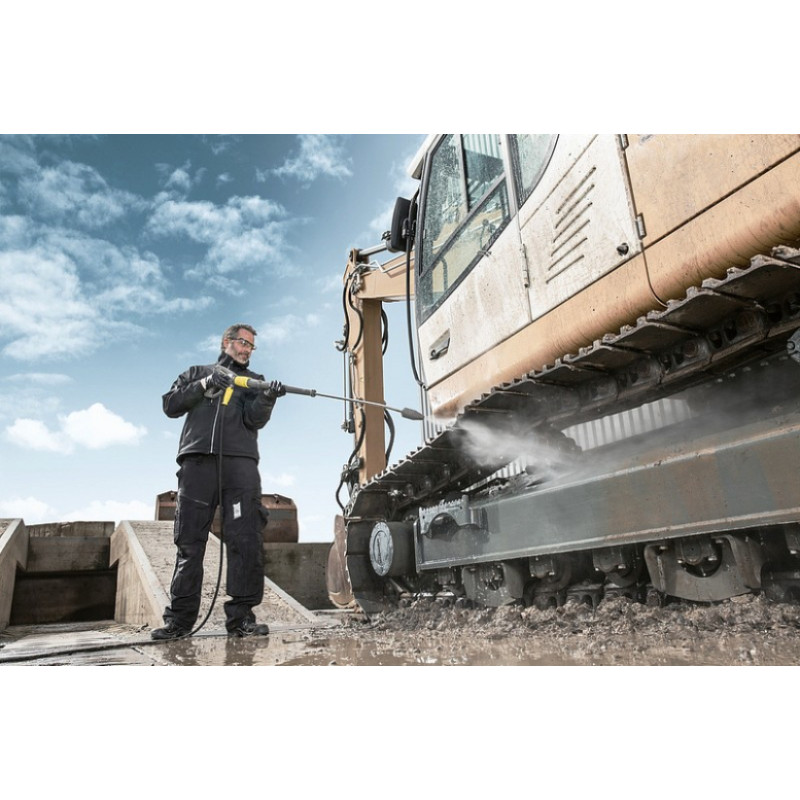 Augstspiediena tīrīšanas iekārta mazgāšanai ar auksto ūdeni HD 10/25-4 S ar vertikāli veidotu konstrukciju pārsteidz ar vadības sistēmu ar manometrisko slēdzi, EASY!Force augstspiediena pistoli un Servo vadības sistēmu.