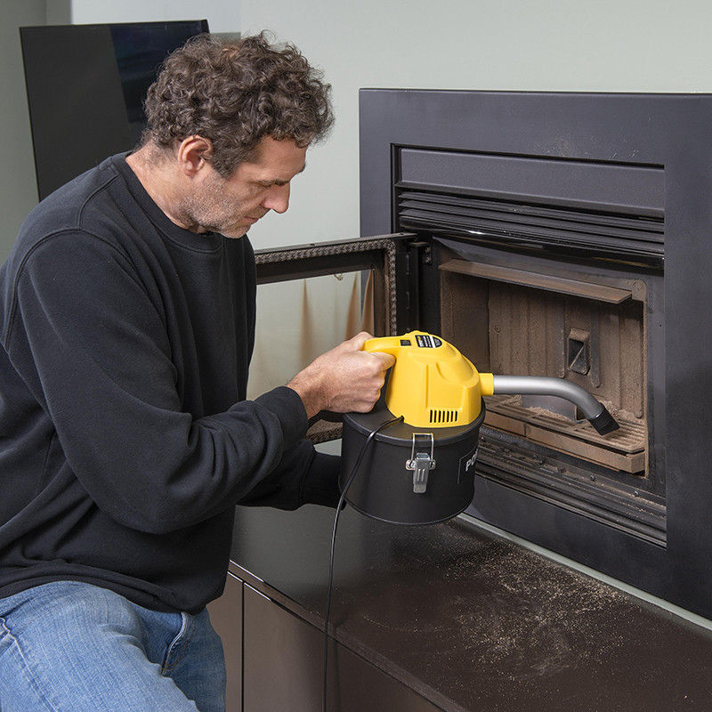 Izmantojiet šo 600 W sūcēju, lai uzsūktu pelnus ar temperatūru līdz 40 °C no malkas vai granulu krāsns, grila uc.
