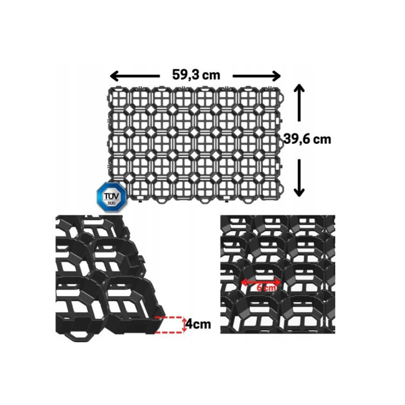 Zālāja režģi var aizpildīt ar zāli oļiem vai jebkura cita veida materiālu līdz 20 mm. Īpašā zālāja režģa konstrukcija palīdz saglabāt segumu un novērš ūdens peļķu veidošanos.