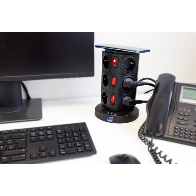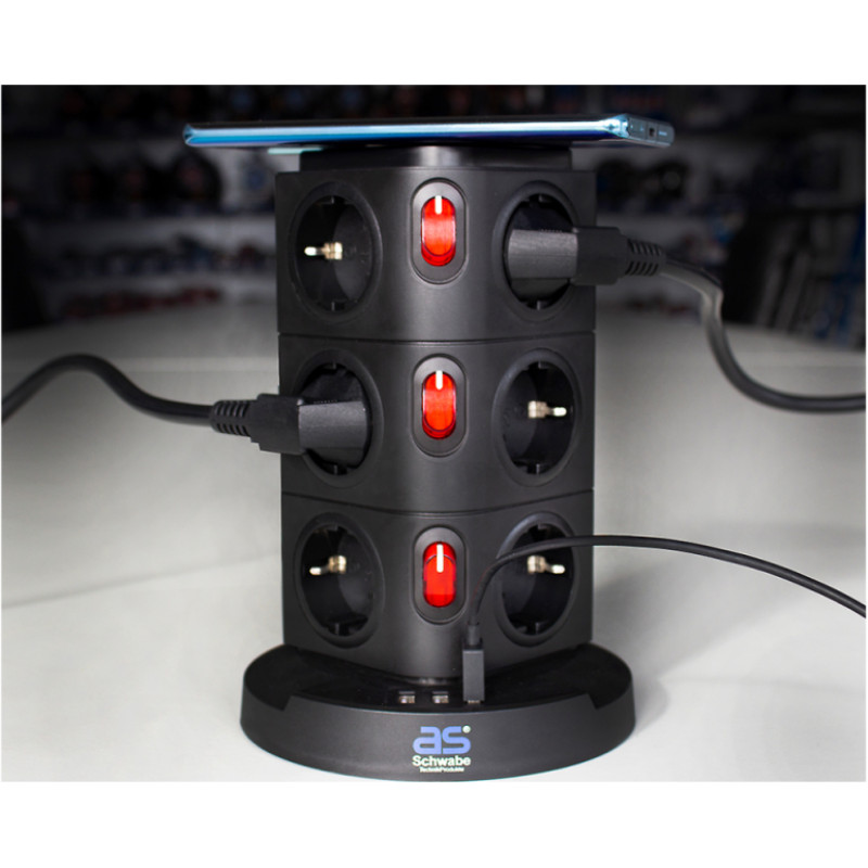 As-Schwabe 12 elektrības ligzdu pagarinātājs ar bezvadu uzlādes staciju AS-SCHWABE