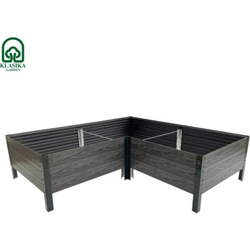 Paaugstinātā dārza dobe KLASIKA Woodlook L – formas, pelēka: 146x146x30 cm / gab