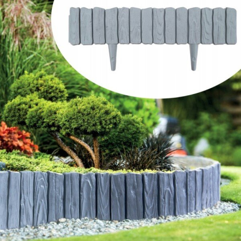 Dekoratīvā zāliena apmale WOOD 58 × 12.5 cm, gaiši pelēka / gab