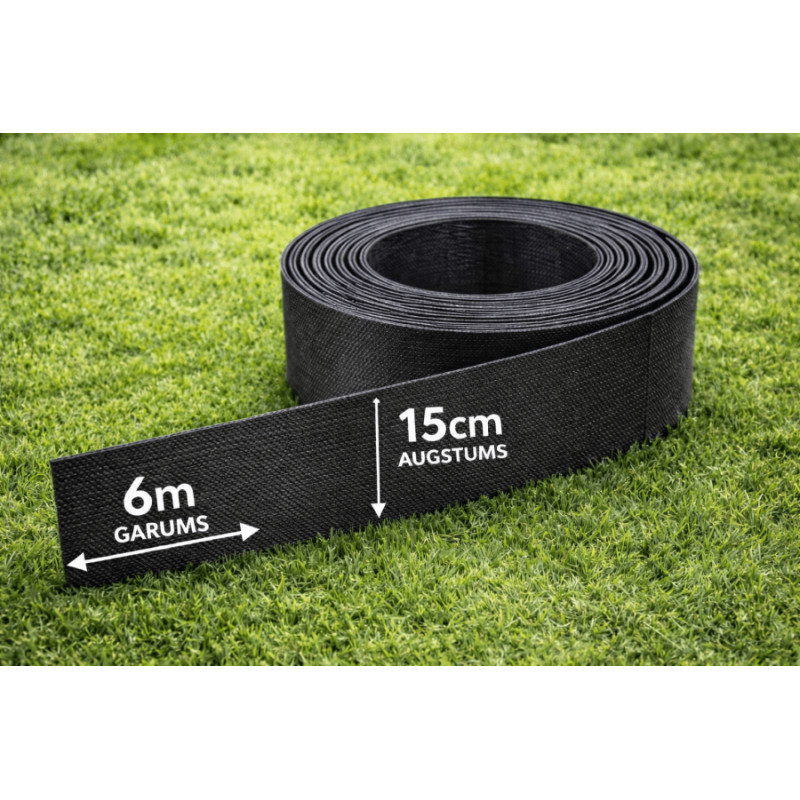 Plastmasas zāliena apmale 6 m × 15 cm, melna / gab