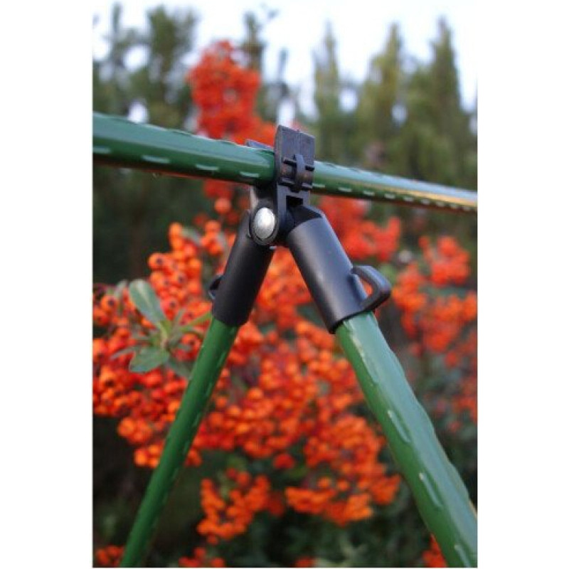 Eņģu savienotājs tiek izmantots lai savienotu atbalsta ietus ar diametru 11 mm un izveidotu savas balstu konstrukcijas vīnogulājiem dārzeņiem.