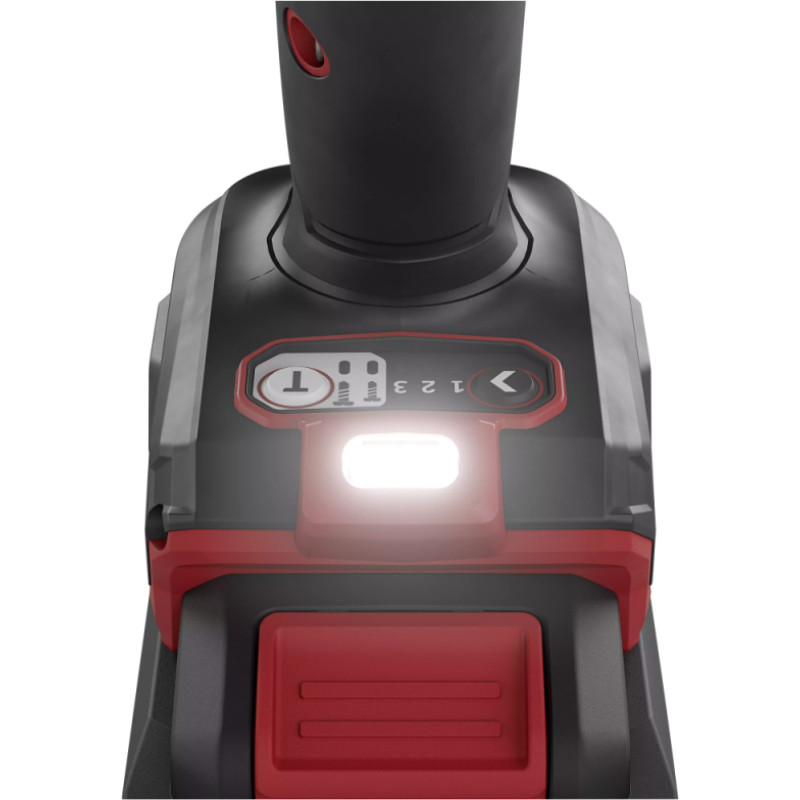 standarta piederumi: Uzgaļu glabātava, jostas āķis, koferis, 2 x 5,0 Ah akumulatori, lādētājs