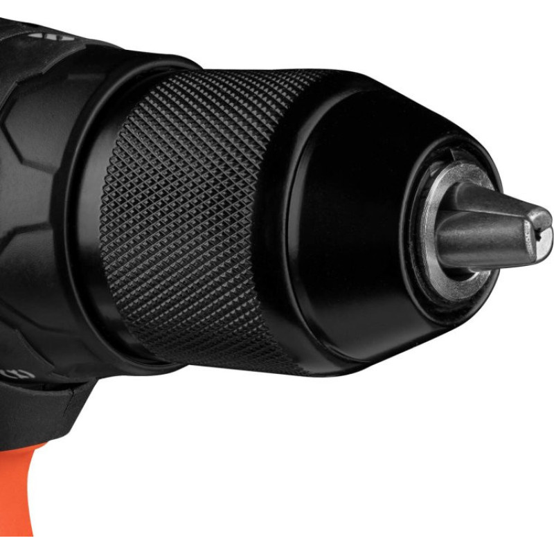 • Metāla kārtridžs ir izturīgs pret bojājumiem un ļauj mainīt aprīkojumu ar vienu roku. Iekārtas maksimālais diametrs ir 13 mm, un funkcija "Lock system" ļauj to droši nostiprināt un neļauj patronai attīties, strādājot zem slodzes.