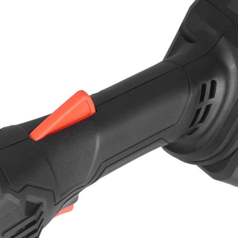 Instruments ir aprīkots ar aizsardzības sistēmu pret ieslēgšanu, izmantojot īpašu pogu. Sākuma poga nav nofiksēta, tāpēc rīks pārstās darboties, ja nejauši izslīdēs.
