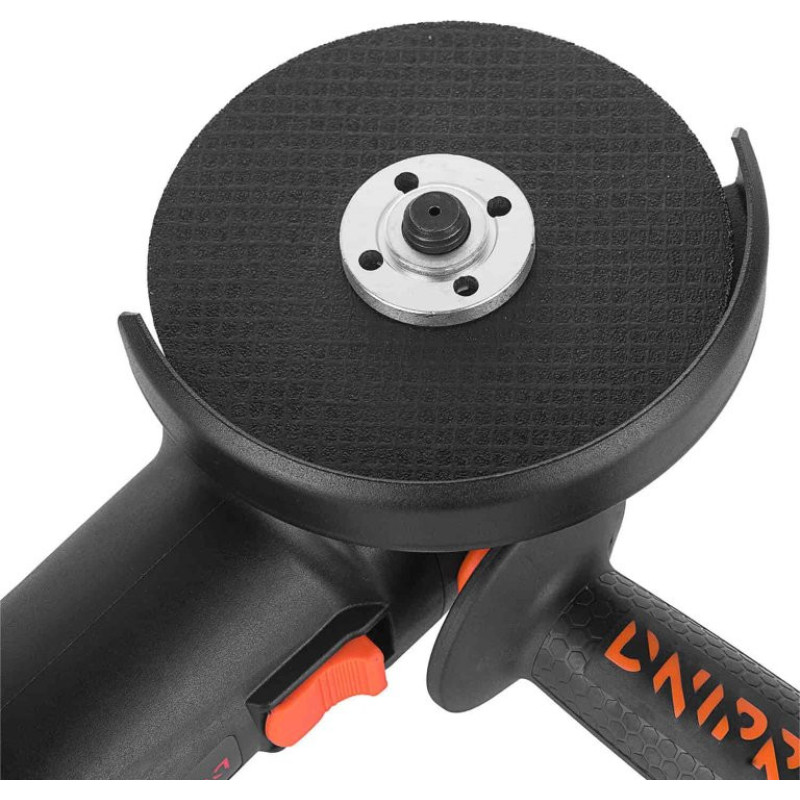 Šis modelis kvalitatīvi slīpē koku un metālu ar slīpdisku, kura diametrs ir līdz 125 mm, ar taisnu un pītu stiepli līdz 0,5 mm, jebkura veida graudu gala atloku, pašbloķējošu stiprinājumu, kā arī sasmalcina betonu līdz 115 mm.