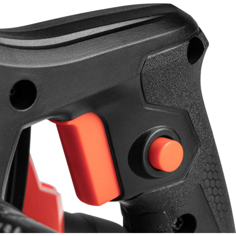 • ergonomiska starta bloķēšanas poga pietiekami izvirzīta uz āru, lai ērti lietotu gan kreiļi, gan labroči;