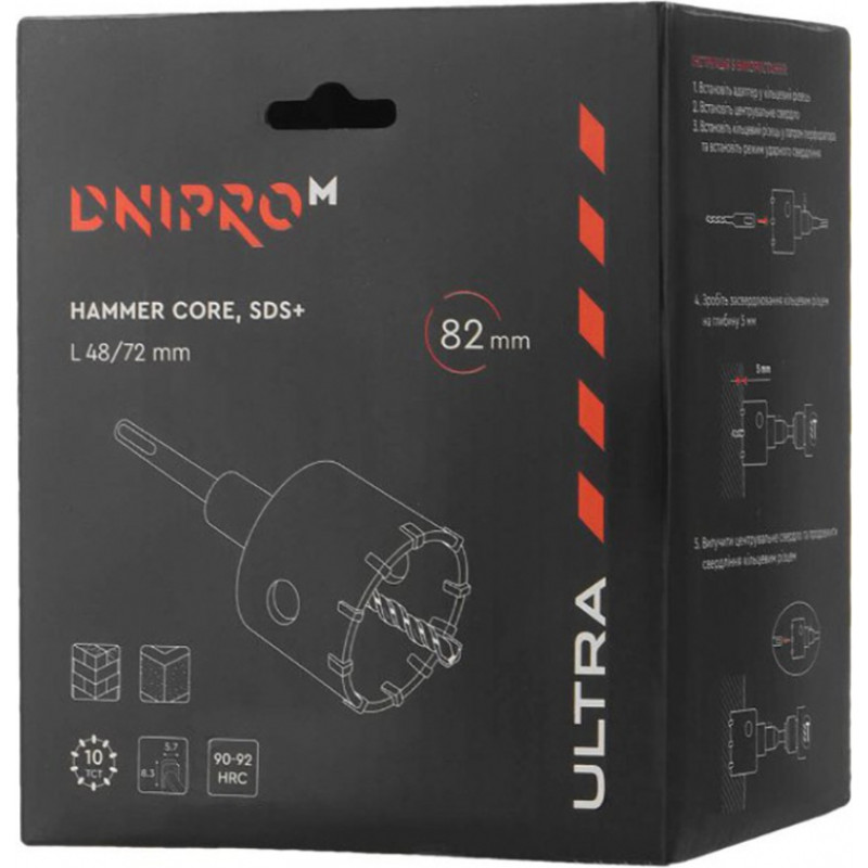 Kroņurbis Dnipro-M Ultra 82 mm tiek izmantots apaļu urbumu urbšanai cietos materiālos, piemēram: betonā, ķieģeļos, kaļķakmenī.