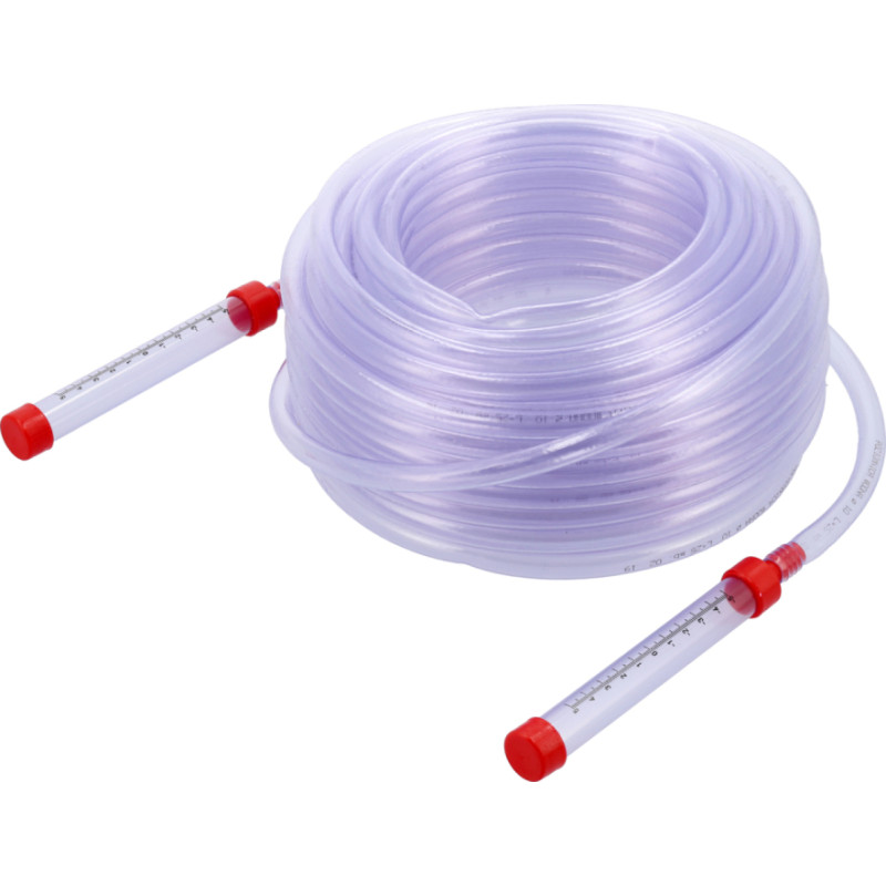 1. Piepildiet šļūteni ar ūdeni bez gaisa burbuļiem, gandrīz līdz pilnai (šļūtenes galos atstājiet gaisa kolonnas apmēram 5-10 cm).