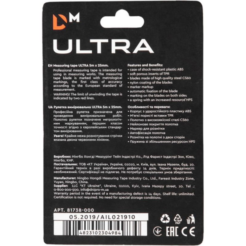 Dnipro-M Mērlente Ultra 25mm x 5m, ar marķieri 81738000 DNIPRO-M
