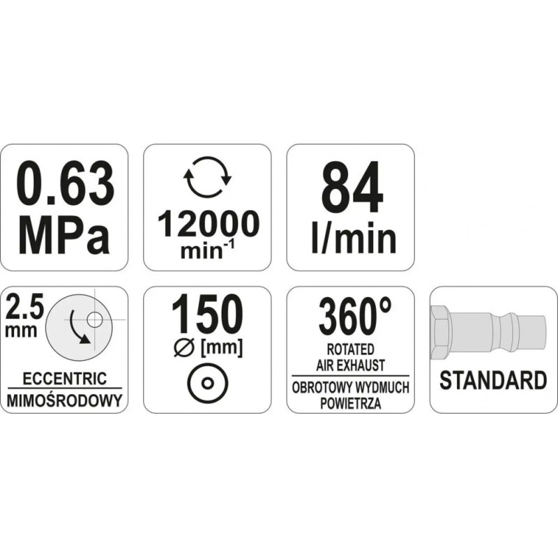 Yato Pneimatiskā ekscentriskā slīpmašīna 1/4" 6.3bar. 150mm 84l/min YT-09739 YATO