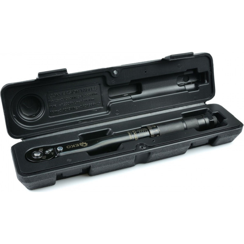 Dinamometriskā atslēga paredzēta precīzai skrūvju/uzgriežņu pievilkšanai ar noteiktu spēku. Pievilkšanas spēka regulēšanas mehānisms ar skaidri saskatāmu skalu atrodas rokturī. Atslēga ir aprīkota ar 1/4” pieslēgvietu un darbojas diapazonā no 5 līdz 25 Nm. Izgatavota no augstas kvalitātes CrV instrumentu tērauda, tā ir izturīga un nodrošina ilgu kalpošanas laiku. Radeļkotā tērauda rokturis nodrošina drošu satveršanu, kas uzlabo darba komfortu.