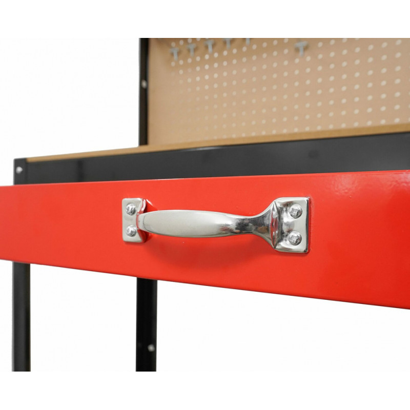 Darbagalds ar stabilu un izturīgu konstrukciju. Galds ir izgatavots no pulverkrāsota tērauda un MDF plātnēm. Šim modelim ir papildu balsti, kas ļauj darba virsmai izturēt svaru līdz 100 kg, nodrošinot stabilitāti un drošību pat intensīvas slodzes darba laikā.