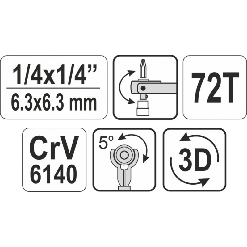 Yato Reversa Atslēga Uzgaļiem Un Muciņām 2In1 1/4" YT-03311 YATO
