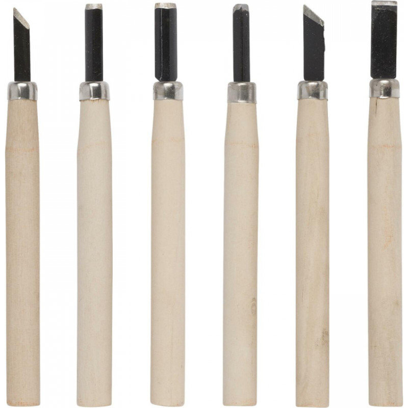 Kreacionālais komplekts ar 6 mini koka kaltēm ir ideāls precīzam un detalizētam darbam ar koka materiāliem. Katra kalts ir 135 mm gara ar galvas platumu 6 mm.