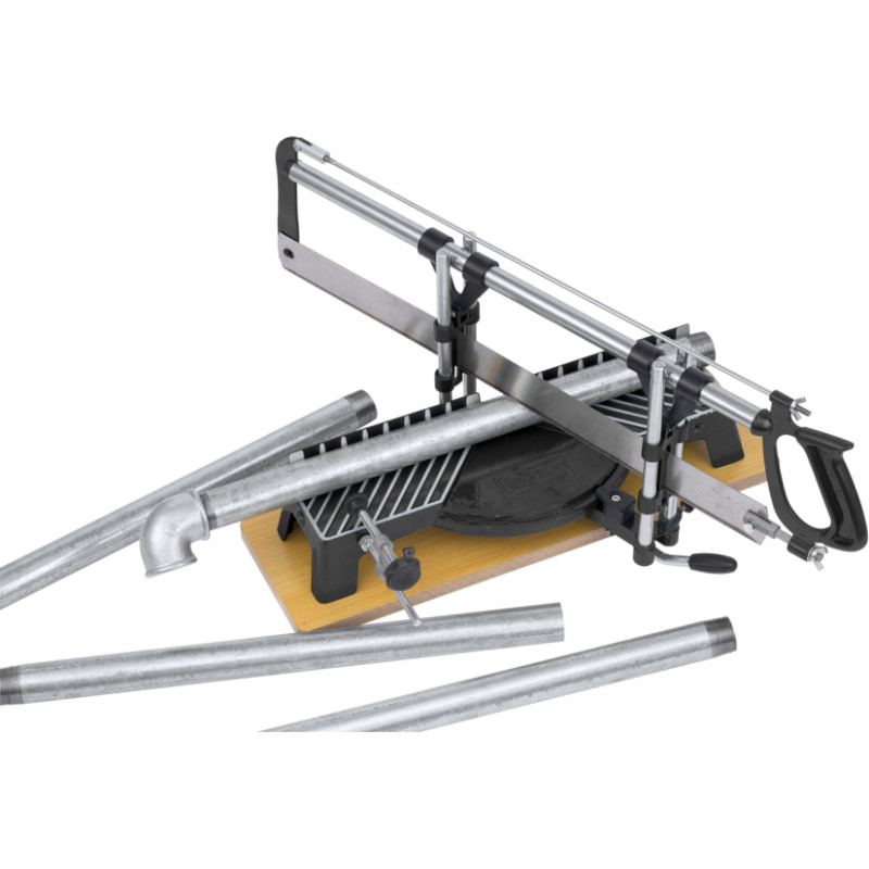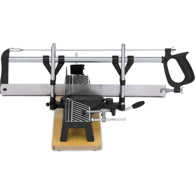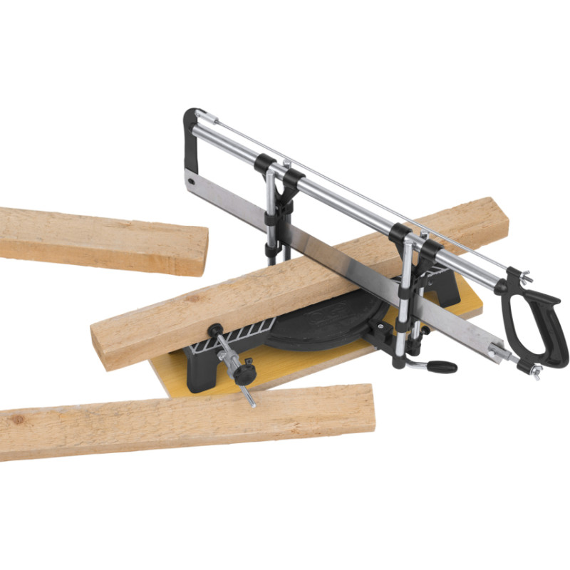 Šī manuālā 550 x 120 x 400 mm leņķa zāģis ir ideāli piemērota dažādu materiālu, piemēram, koka stieņu, dēļu, cauruļu un citu, griešanai. Tam ir 6 automātiskie leņķu iestatījumi (90°/45°/36°/30°/22,5°/15°), taču to var konfigurēt, lai grieztu jebkurā izvēlētajā leņķī. Leņķa zāģis ir aprīkots ar 4 caurulēm precīzai griešanai un vairākiem skavām, lai nostiprinātu materiālu.