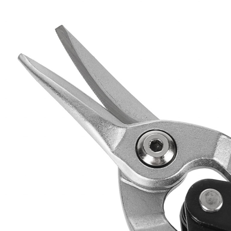 Metāla šķēres ir paredzētas, lai veiktu taisnu griešanu ar labo roku un figurētu griezumu labajā un kreisajā pusē ar maziem rādiusiem.