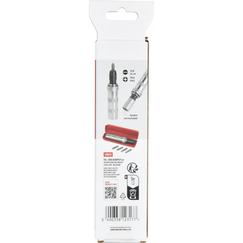 Effortlessly extract deformed, rusty screws using this impact screwdriver. The anti-slip handle provides a firm grip. The bit holder comes with 4 screwdriver bits.