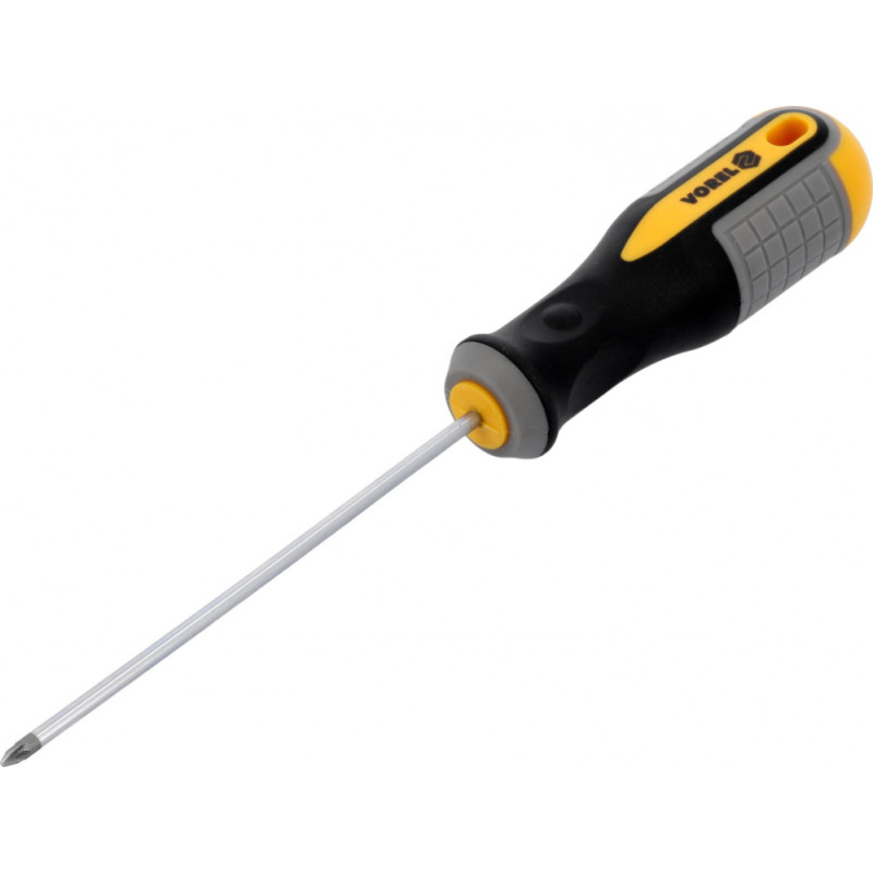Krusta skrūvgriezis PZ0x100 mm no Vorel 60932. Izgatavots no CrV hroma-vanādija tērauda. Galva ir ar satīna apdari, papildus smilšstrūklota un namagnetizēta, kas nodrošina drošu skrūves turēšanu. Rokturi veidoti no divām kompozītmateriālu plastmasām. Roktura caurums ļauj skrūvgriezi pakārt. Indekss: 60932
