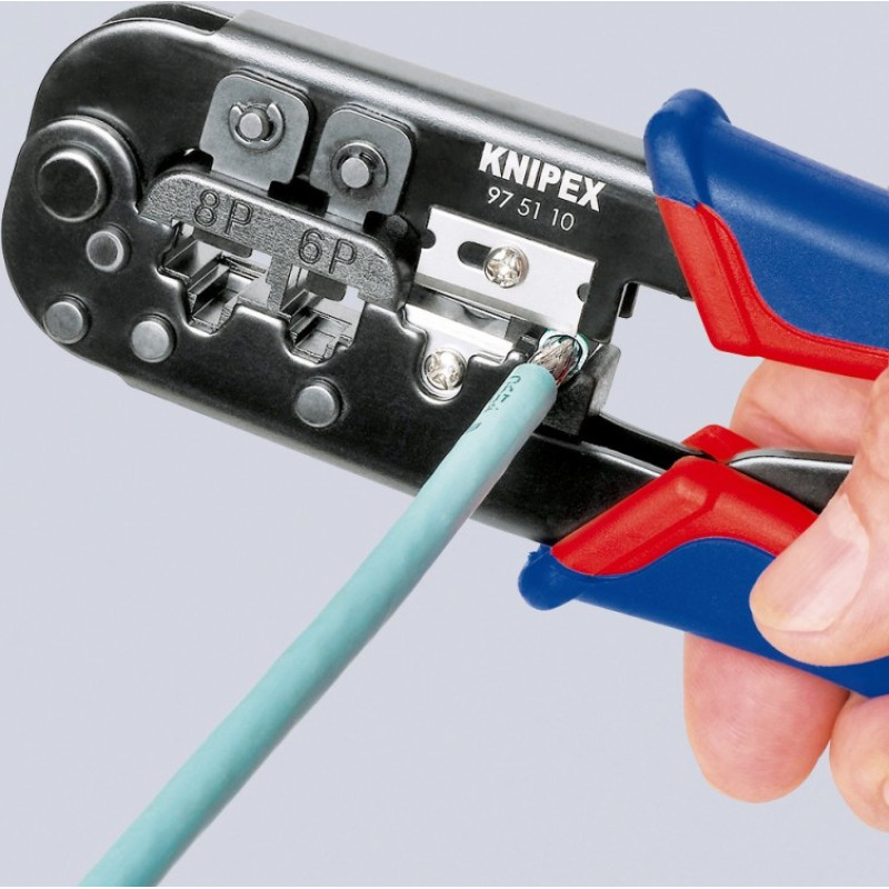 Profesionalus įrankis plokščių telefoninių kabelių kirpimui ir nuizoliavimui. 6-ių bei 8-ių polių telekomunikacinių antgalių presavimui. Apvalaus kabelio nuizoliavimui.