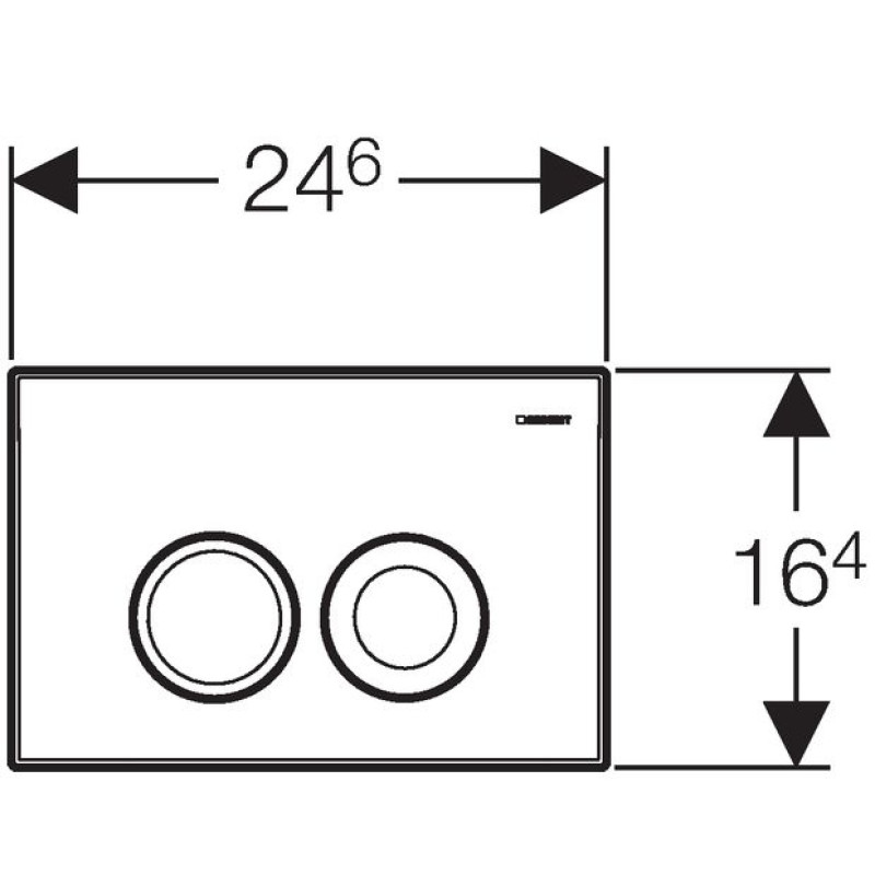 Geberit Delta WC rāmja skalošanas spiedpoga Delta21 (uzstāda no priekšpuses), balta. Materiāls - plastmasa; divi skalošanas režīmi; izmēri 246mm x 164mm