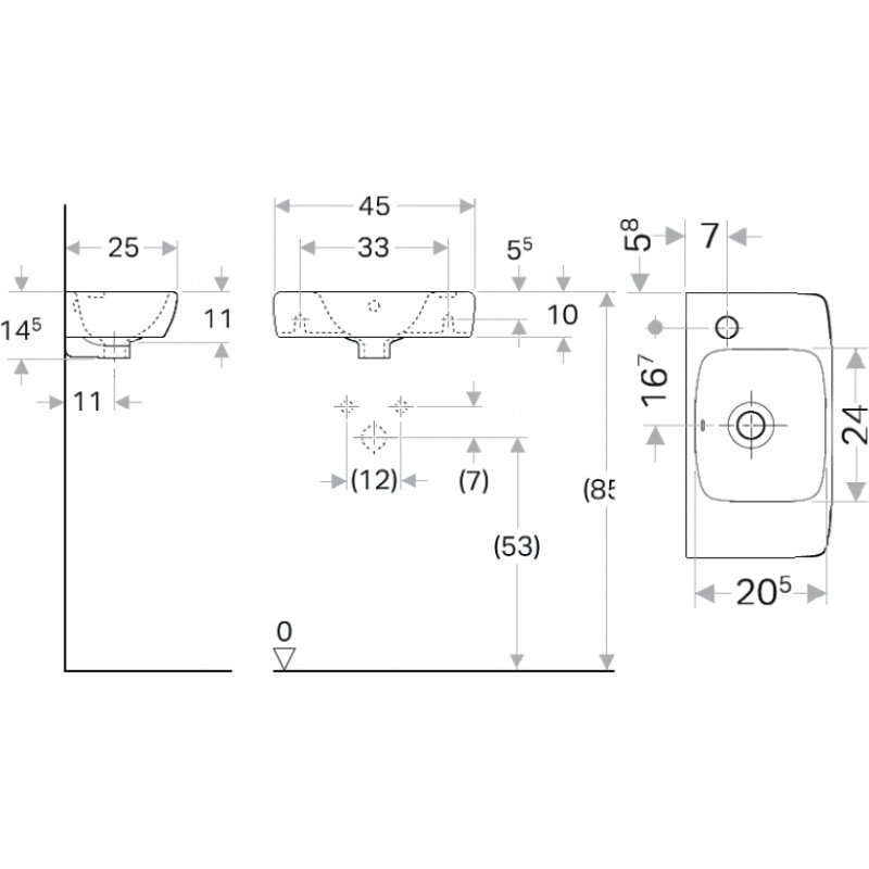 Jūsu iepirkumu grozs ir tukšs! Geberit Selnova izlietne 45x25cm kvadrātveida, maisītāja caurums kreisajā pusē - gab.