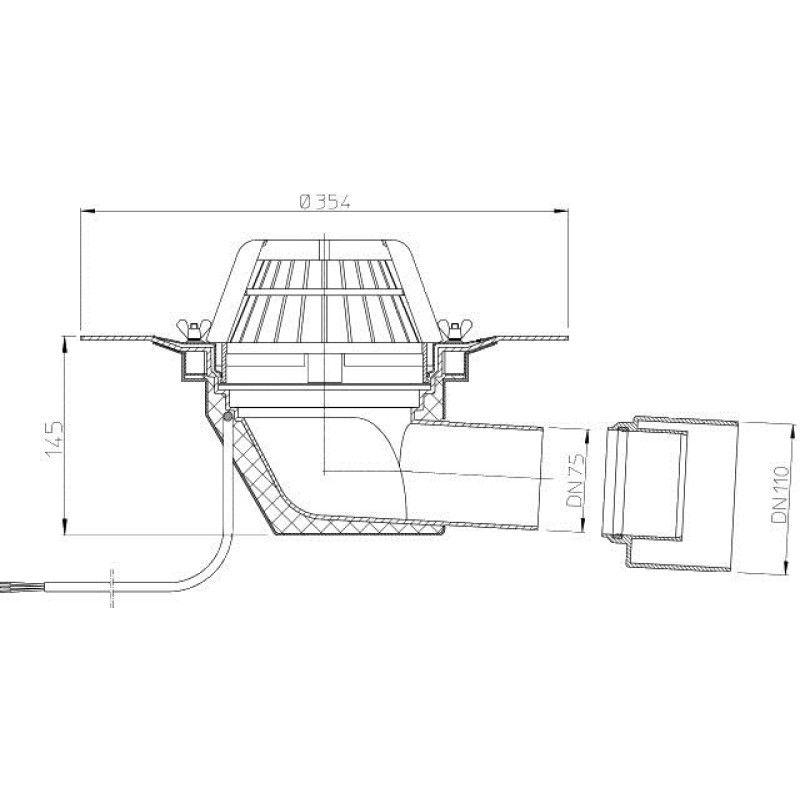 | Jumta piltuve DN75/110 ar apsildi, horizontāls |