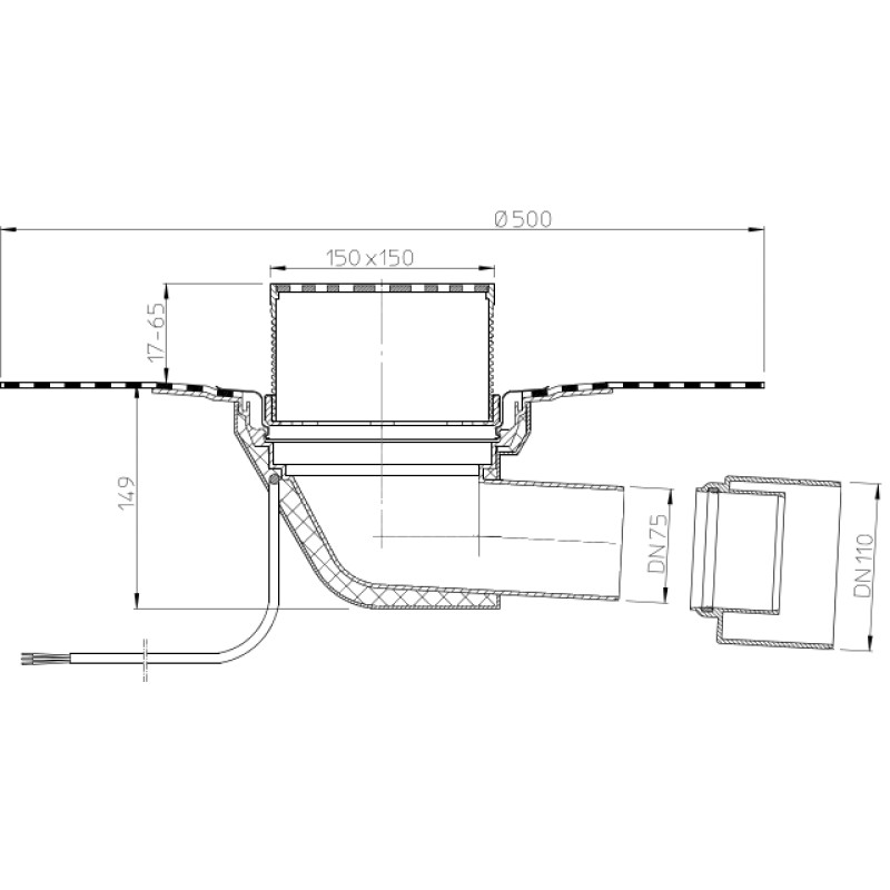 Jūsu iepirkumu grozs ir tukšs! Hl Hutterer & Lechner Gmbh Jumta traps DN75/110 ar apsildi un bituma manžeti, horizontāls - gab.