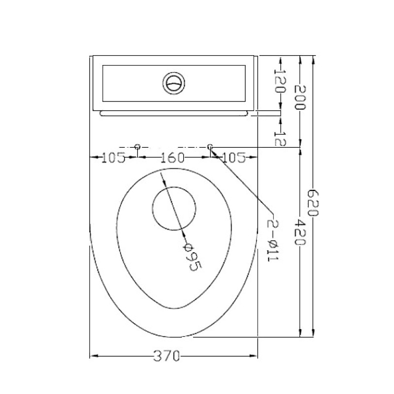 dziļums: 620 mm