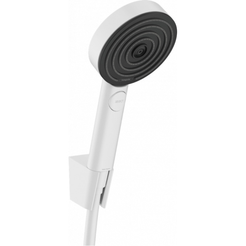 Hansgrohe Pulsify 105 3jet, rokas dušas komplekts ar turētāju un dušas vadu 1600mm, matēts balts - gab.