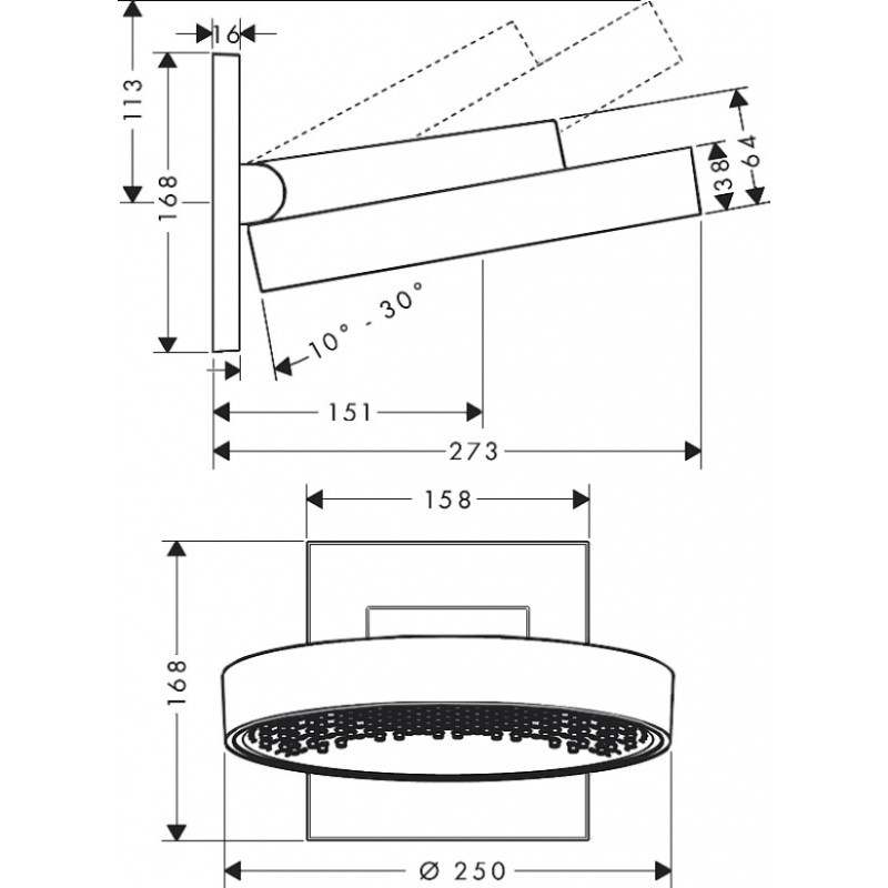 Augšējā dušas galva 250mm stiprināšanai pie sienas