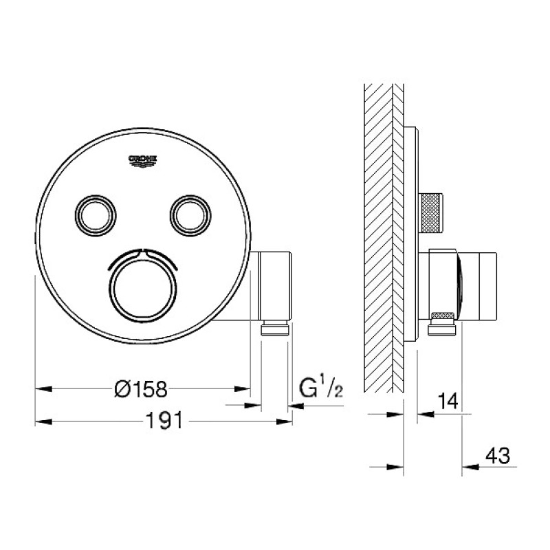 Grohe dušas termostata SmartControl round virsapmetuma daļa, ar 2 izejām, ar dušas turētāju, hroms