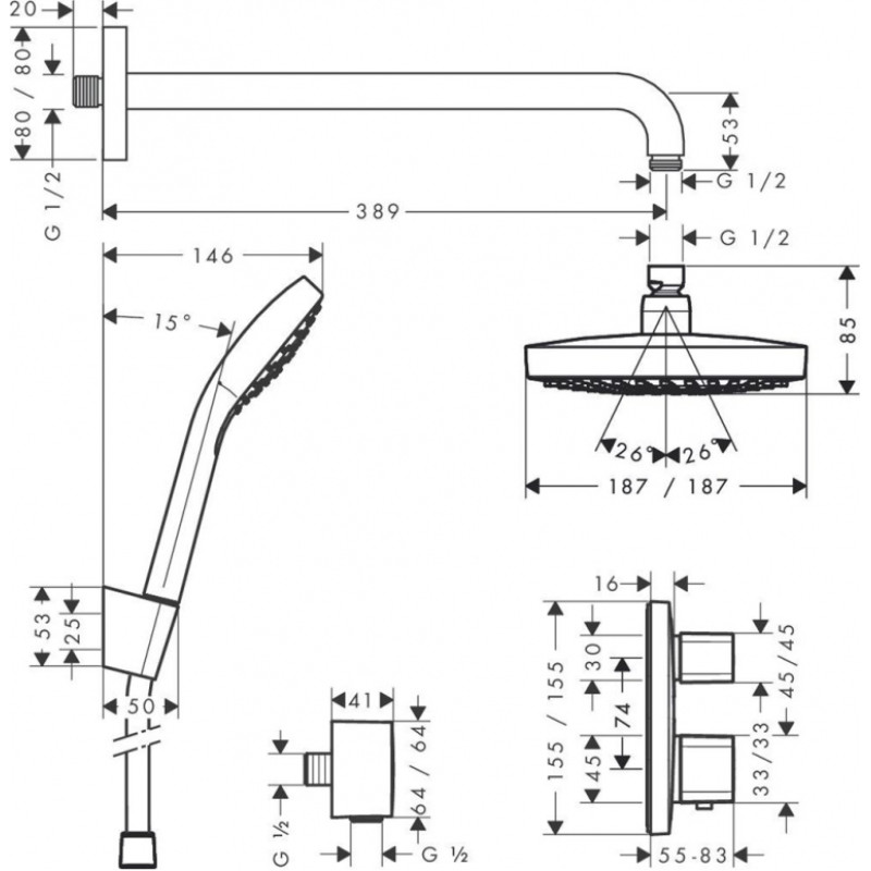 Hansgrohe Croma Select E/Ecostat E Showerset iebūvējams dušas termostata komplekts ar augšējo dušu un rokas dušas klausuli, hroms - gab.