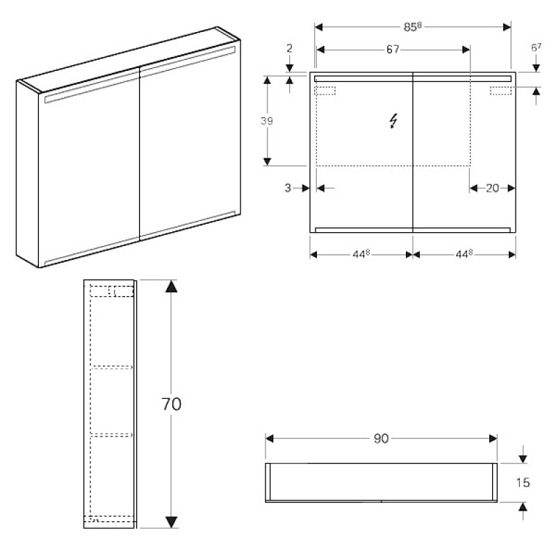 Geberit Spoguļa skapis Option ar apgaismojumu, divas durvis 90x70 - gab.
